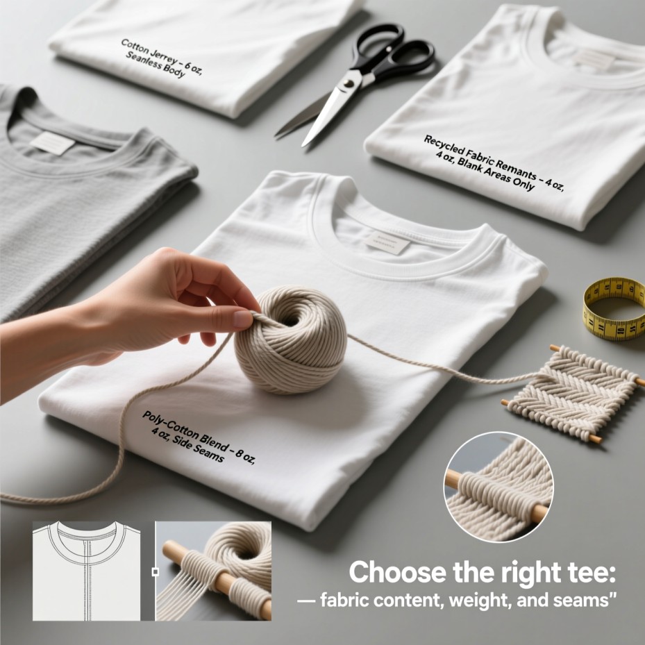 Pick tees made of jersey fabric, cotton jersey, or a cotton mix for predictable stretch. These give you stable yarn strips that coil neatly after stretching. Avoid very slinky synthetics unless you want a soft drape and less curl.