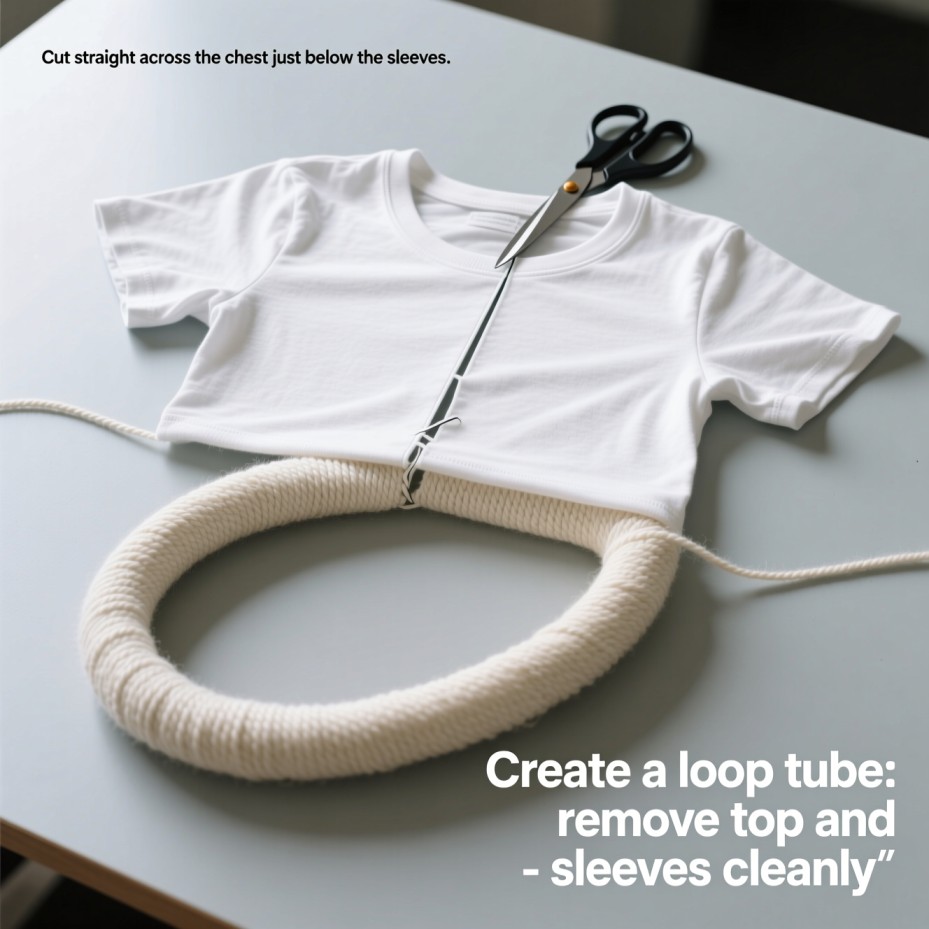 If the shirt has no side seams, you’re golden. A seamless tube gives you connected strips without joins and fewer weak points. That matters for yarn durability in heavy-use items.