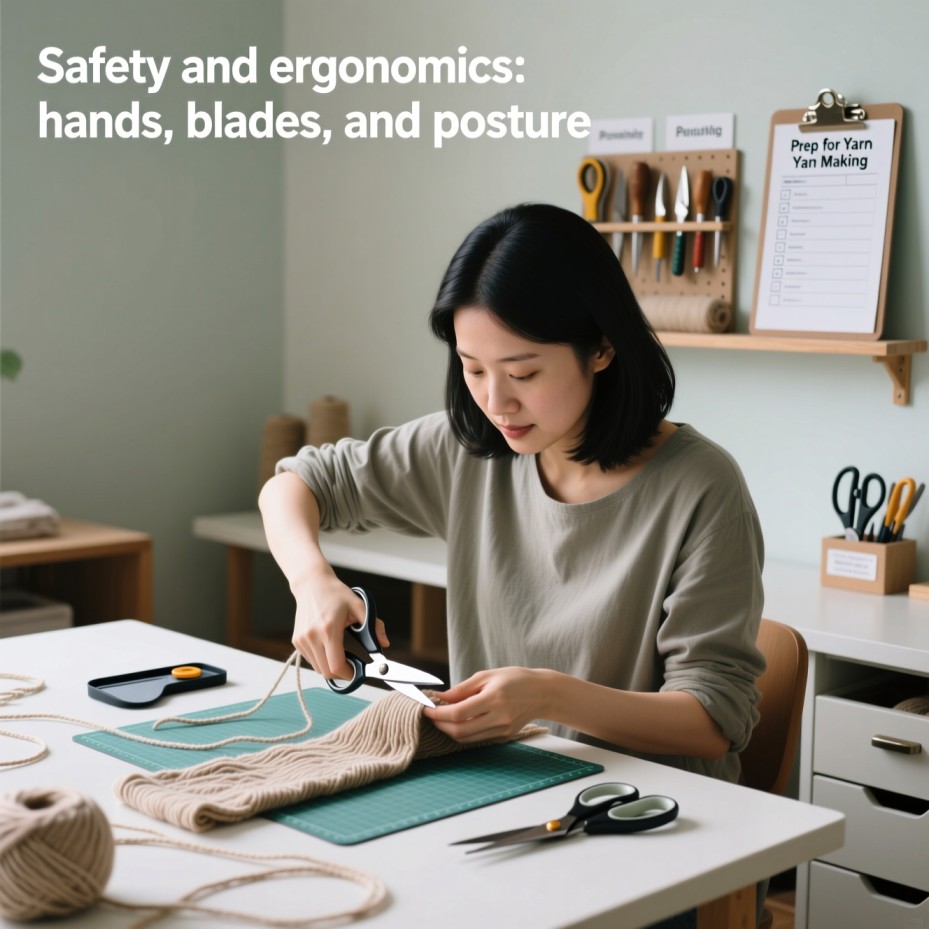 Sharp tools reduce strain and slipping. Replace blades often, use a stable surface, and cut away from your body. Simple yarn hacks like a non-slip mat make a big difference.