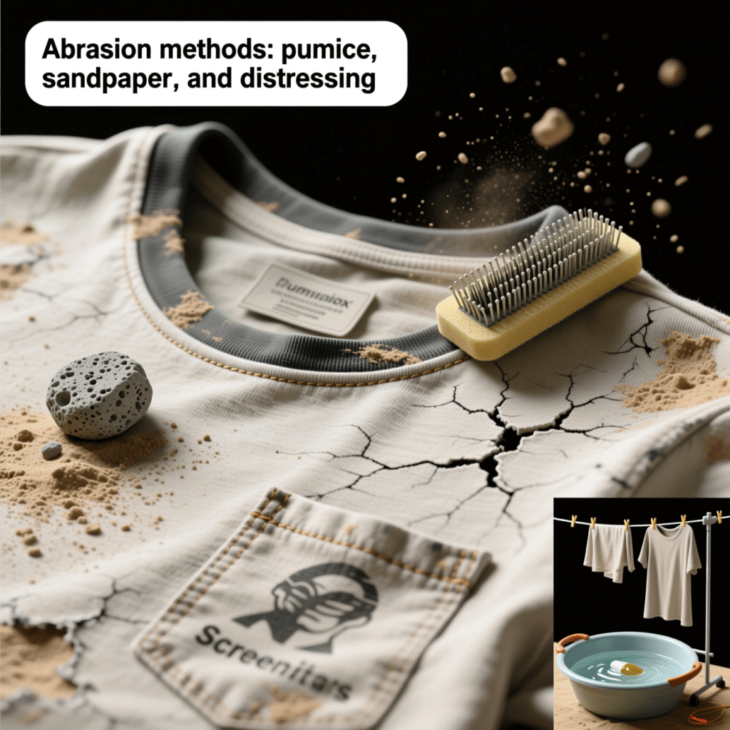 Wash after abrasion to remove dust and relax fibers. Combine with a vinegar rinse for softer tees for a quick comfort win. Dry on low heat to finish the process.