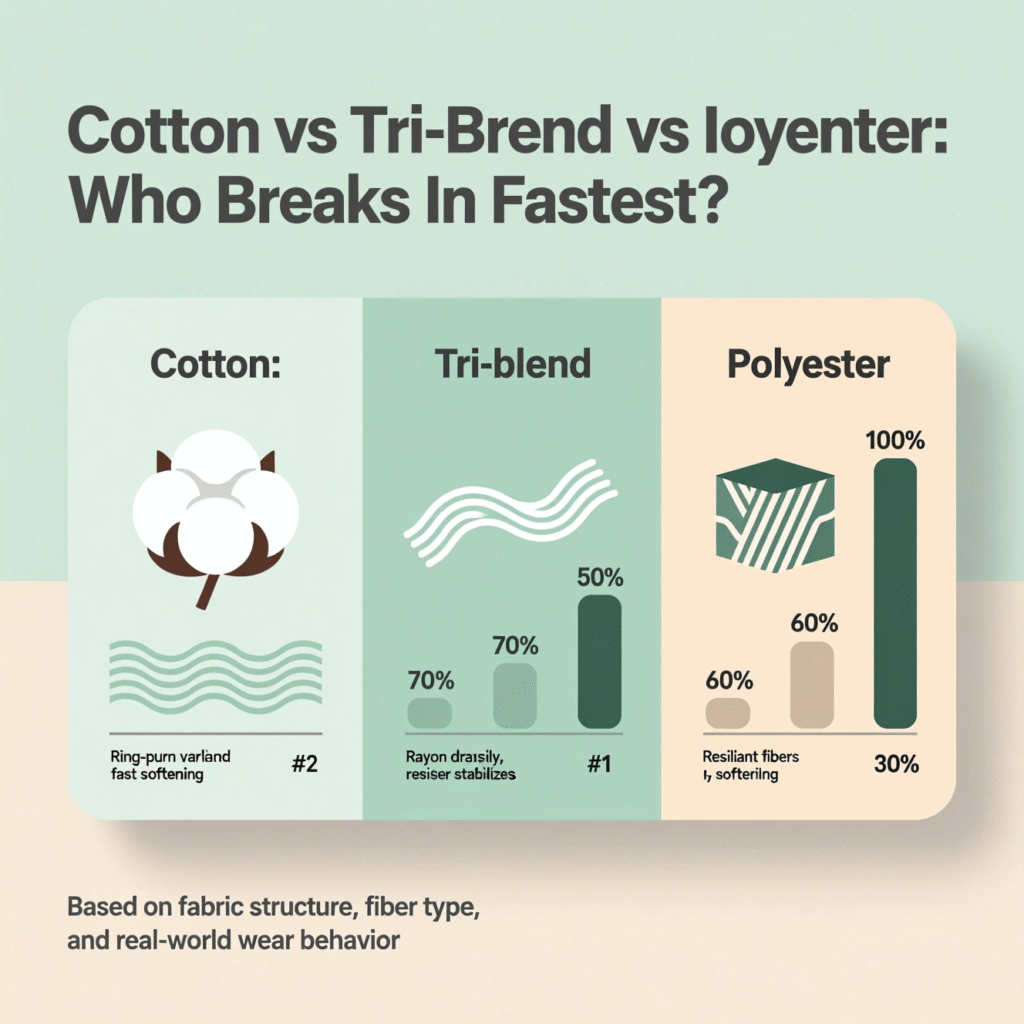 Cotton vs tri-blend vs polyester: who breaks in fastest?