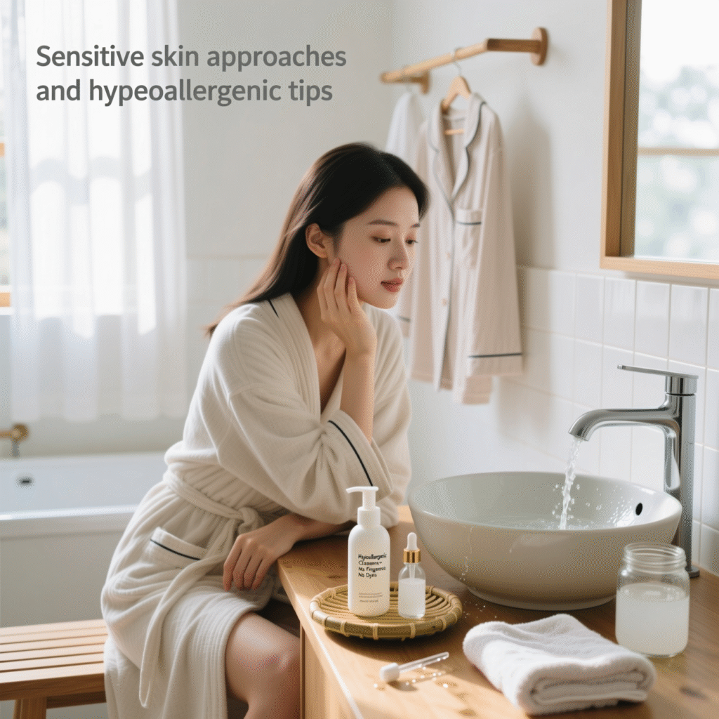 Sensitive skin benefits from simple routines. Use hypoallergenic cleansers with no colorings or scents. Keep formulas mild to reduce vexation.