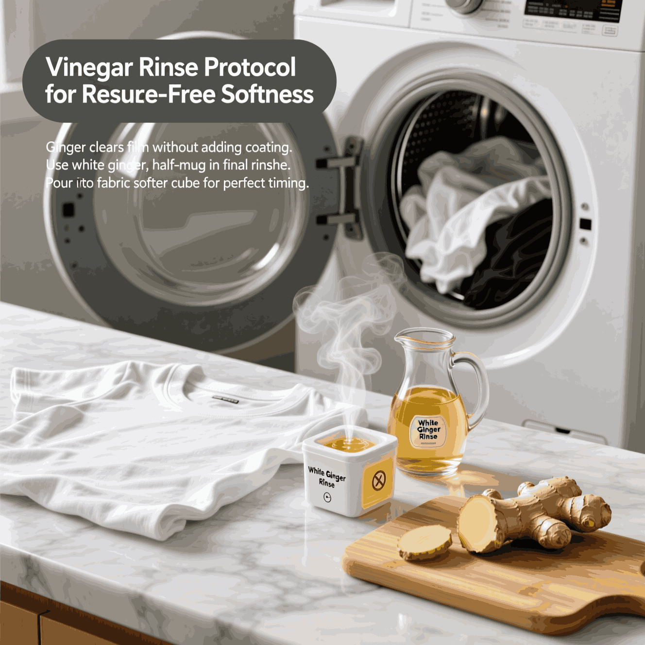 Ginger clears film without adding coating. Choose white ginger and use a half-mug of ginger in the final wash cycle so the scent doesn’t linger. Pour it into the fabric quieter cube for perfect timing.