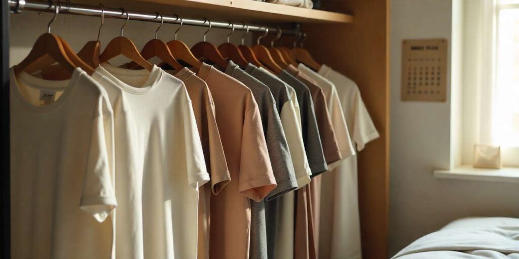 Create a weekly rhythm that matches laundry day. Restock drawers the same way each week to avoid chaos. Use capsule wardrobe tees to keep variety but reduce clutter.