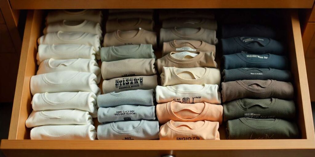If your closet rod is jammed, folding is your best friend. You can store more tees vertically in drawers. This approach also helps with store t shirts without wrinkling.