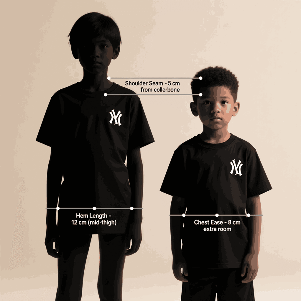 Athletic brands cut for movement; fashion retailers cut for silhouette. Team jerseys add length and room for layering. Consider youth clothing size explainedyouth apparel dimensionsyouth medium t-shirt fit, and children’s apparel sizing for context.