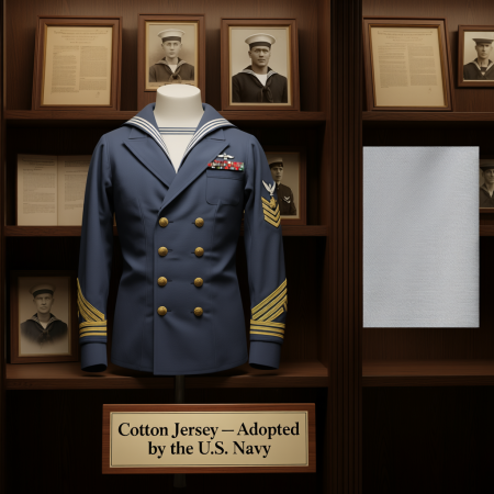 The U.S. Navy was among the first to use cotton jersey stuff for its cortege undershirts. It was bright, pervious, and easy to clean — perfect for hot rainwater.